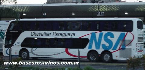 Un omnibus de dos pisos de la empresa paraguaya Nuestra
